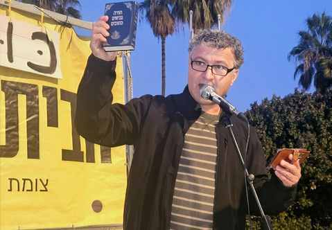 זה כבר קורה! בעשרות מוקדי המחאה כבר מדברים את היהדות של מגילת העצמאות בעקבות הנואמים, מניפי התנ״ך שלנו.